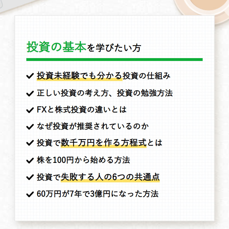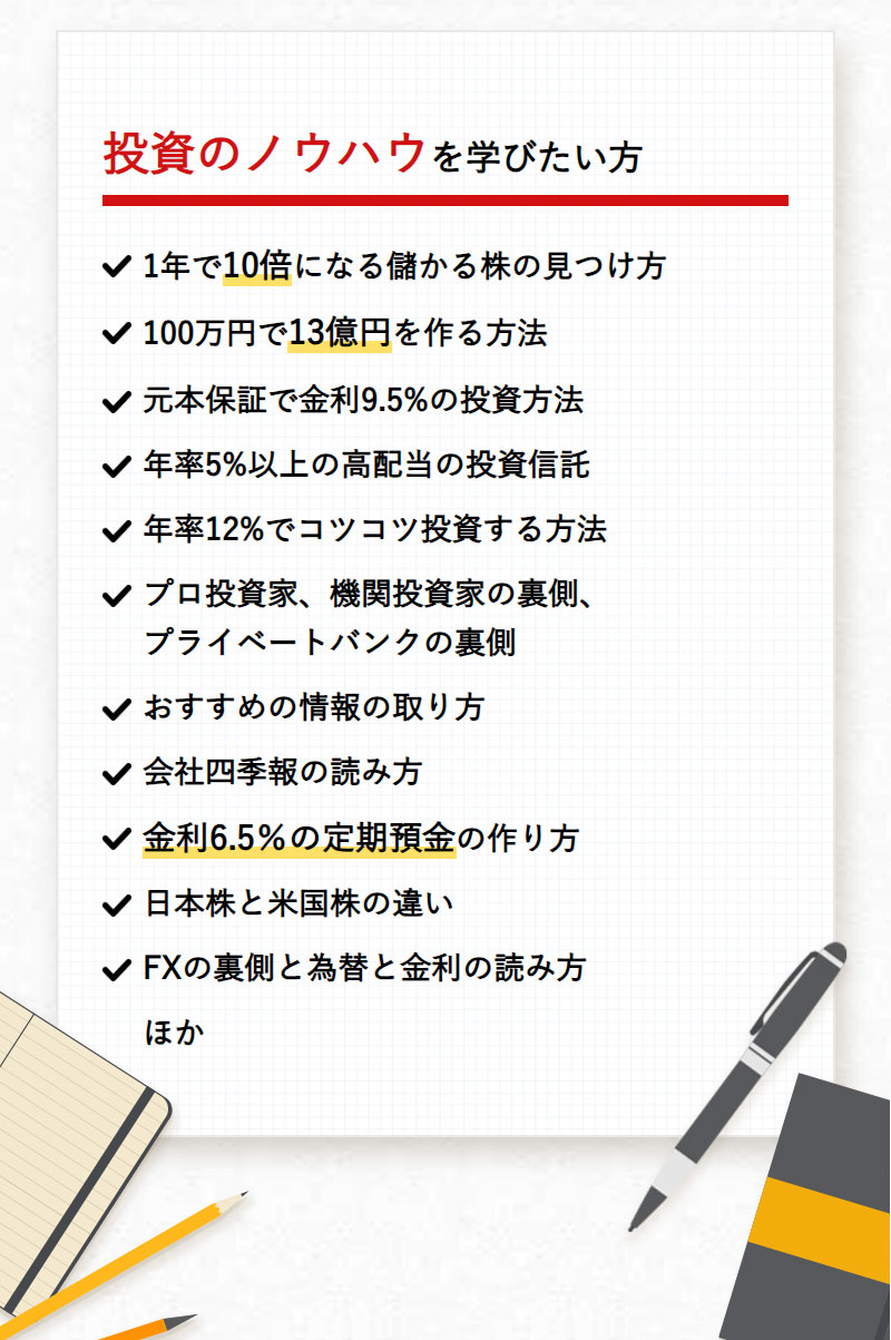 中田投資クラブに参加すると、以下のコンテンツを毎日無料で提供します。